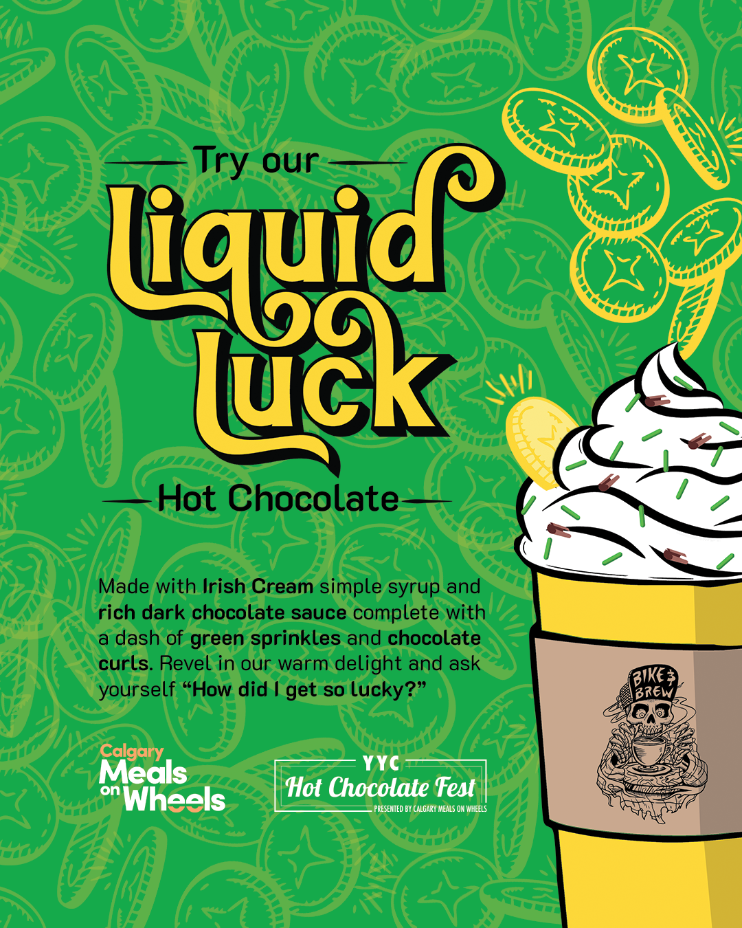 For the entire month of February, Bike and Brew will be participating in Calgary's YYC Hot Chocolate Fest, which has been dubbed, "YYC's Sweetest Fundraiser." Proceeds from every drink sold helps Calgary's Meals On Wheels provide nutritious meals to vulnerable Calgarians.